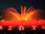 Of course, the first two shows are overflowed by the tourists. But from half past ten, one can really enjoy the water games. It is most imposing to sit on the cascades, the stairs upside the fountain and simply let the show happen. Of course, at night, the Mational Palace is wonderfully illuminated. And at the other side, one can admire the brightly illuminated church Sagrat Cor on the Tibidabo, as in every night.