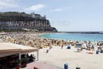 The way to the beach is not far from the port. There is a nicely arranged mole with a fine goldden sand beach separated by a bridge. The water is shallow up to a wide distance and the bathing vacationers could still have enough space between each other. Also the boardwalk is nicely arranged in this area with some nice benchs with which it is possible to sit in front one of the nices cafés without having to drink or eat anything. Those who can should rent a deck chair or a parasol and get well equipped for a full day on the beach. The advantage of this area in the south-west is the relatively still air that is not possible to get at the eastern part of the island. Due to the situation at the lee of the trade wind, one has some optimal conditions for sun bathing, so that one has not to struggle with the blowing wind as it is the case for example in Maspalomas.